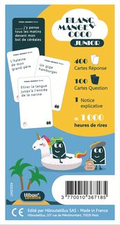 Dans Blanc Manger Coco Junior : La Maitresse, les joueurs créent des combinaisons hilarantes en comblant des phrases à trou. Ce jeu est essentiellement la version pour les enfants du jeu pour adultes Blanc-manger Coco