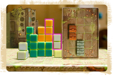 À chaque tour, les aventuriers peuvent soit piocher de nouveaux blocs dans la réserve, soit placer UN bloc dans l’espace partagé. Ils peuvent ensuite vérifier s’ils ont complété des cartes de demande avant de remplir leur main. Le premier aventurier à avoir rempli le nombre de cartes de demande requis pour le nombre de joueurs met fin à la partie ! Les scores seront comptabilisés et un joueur sera désigné comme vainqueur.