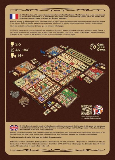 Dans Bruxelles 1893 – Belle Époque, incarnez un de ces illustres architectes : construisez des maisons, créez des œuvres d’art et tirez profit des différents notables de l’époque pour accroitre votre influence. Accomplissez ainsi votre chef-d’œuvre architectural, illustré sur votre plateau Architecte.