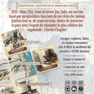 Vous incarnez Jim Tully, un ouvrier lassé par un quotidien bien loin de ses rêves de cinéma. Quittez tout et, de train en train, tentez de traverser le pays avec l’espoir de rejoindre le plus célèbre des vagabonds : Charlie Chaplin !