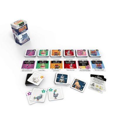 Cette mécanique apporte une dose de chaos qui correspond entièrement à la thématique inspiré de Tom et Jerry. Le plateau de jeu sera en constant mouvement pendant la partie. Les parties sont courtes et intenses !