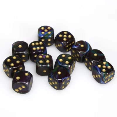 Chessex Lustrous – Set de 12 dés à 6 faces – Shadow with Gold 16 mm