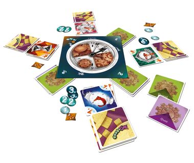 Comme une horloge comptez le temps qui passe : annoncez une heure puis retournez une carte. Celle-ci peut influencer ce que le joueur suivant doit dire ou faire, alors essayez de ne pas vous tromper. A la fin de chaque manche, les meilleurs quittent la pièce et ceux qui restent ajoutent une nouvelle règle ! Au cours de 4 manches, les joueurs n’ont donc pas tous connaissance des mêmes règles et ceux qui ne les connaissent pas doivent essayer de les déduire. Pour gagner, tentez d’accumuler des heures durant 3 manches, desquelles seront déduites les heures perdues à la dernière. Mode de jeu en équipe inclus, jusqu’à 14 joueurs ! Préparez-vous à un truc de fous !