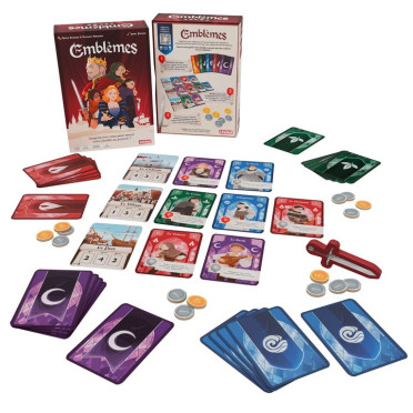 Avec Emblemes, le roi est mort et, sans héritier, le trône attise toutes les convoitises ! Dans ce jeu de stratégie familiale, les familles des contrées voisines se disputent les trois lieux d’influence du royaume : le Château, le Village et le Port. Saurez-vous guider votre famille, déployer vos talents tactiques et porter haut les couleurs de votre emblème pour prendre le pouvoir ? Un jeu stratégique et immersif où chaque décision peut changer le destin du royaume.