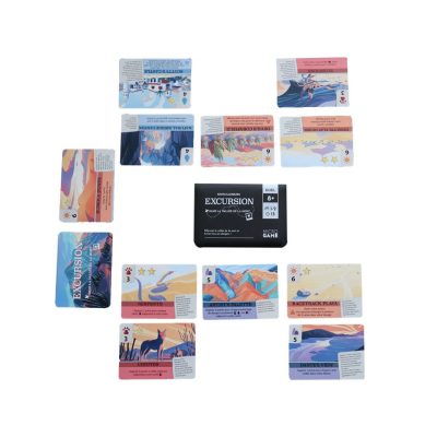 Excursion dans la vallée de la mort est un jeu de construction de tableau de poche, où l’on tente sa chance, pour 1 à 2 joueurs, chaque voyageur s’efforçant d’assembler la meilleure combinaison de cartes dans son Journal de voyage et son Album afin de remporter la partie.