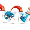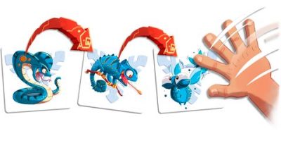 Gobbit est un jeu de réflexes et d’observation basé sur le principe de la chaîne alimentaire : les serpents mangent les caméléons, les caméléons mangent les « mouchticks » et le gorille écrase tout le monde ! Mais attention : il faut que les animaux aient la même couleur, sinon, c’est l’indigestion… Chaque joueur a un tas de cartes devant lui. A son tour, il retourne la première carte de son tas : si l’animal présent sur sa carte peut manger un animal présent sur la carte d’un autre joueur, il doit frapper sur la carte de ce joueur. Mais cet autre joueur peut se défendre : pour cela il faut qu’il frappe le premier sur sa carte. Le plus rapide des deux récupèrera la carte (et celles qui se trouvent en dessous, s’il y en a). Le dernier joueur à avoir encore des cartes est le vainqueur !