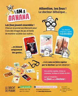 Dans I am a banana, les joueurs désignent un docteur, qui met ses grosses lunettes et reçoit les cartes Docteur 1 à 7.