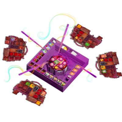 À l’aide de vos baguettes magiques, pointez simultanément l’un des jetons de la salle de la tour pour le récupérer. Si deux joueurs pointent le même objet, celui qui a la baguette la plus puissante gagne l’objet mais doit échanger sa baguette avec le perdant. Seules certaines combinaisons vous permettront d’accéder aux potions mystérieuses et aux grimoires magiques. Pour capturer un monstre, il vous faudra tout d’abord avoir découvert le piège adapté !!