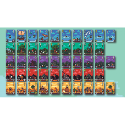 Dans Level Ten vous devez avancer ensemble Izy, votre héros de jeu vidéo. Celui-ci va devoir progresser dans cinq mondes différents représentés par des certes de couleurs et de chiffres différents. Pour progresser vous devrez jouer vos cartes de manière croissante mais à chaque fois vous devrez réinitialiser un des cinq mondes (dans lequel vous pourrez repartir à zéro) et vous n’aurez que deux réinitialisations par monde alors choisissez bien à quel moment et quel monde vous voulez réinitialiser. Petit plus tactique, lorsque vous faites une réinitialisation vous pouvez vous défausser de cartes et les remettre sous la pioche dans l’ordre de votre choix. Sachant que vous aurez les 40 cartes à poser pour gagner, vous pourrez donc mieux gérer votre fin de partie en sélectionnant judicieusement le joueur en charge de la réinitialisation d’un monde.