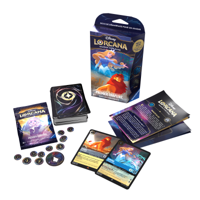 Trois decks de démarrage sont disponibles pour Disney Lorcana : Premier Chapitre. Chaque jeu comprend 60 cartes et propose deux couleurs d’encre avec des styles de jeu distincts. Si vous êtes novice en matière de jeux de cartes à collectionner, ou si vous souhaitez découvrir le jeu avec un deck conçu et testé par l’équipe Lorcana, c’est un bon point de départ.