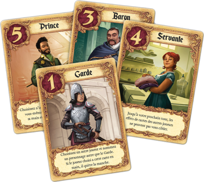 Lorsque la pioche est vide, la carte que vous détenez en main est celle du personnage qui est censé tenir votre billet doux pour la princesse. Il vous faudra faire en sorte que son pouvoir soit le plus élevé, représentant sa proximité envers votre bienaimée.