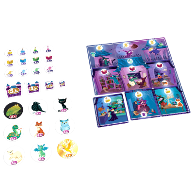 Chacun des joueurs va reconstituer devant lui le Manoir, comme il le ferait avec un puzzle de 9 pièces. Ce faisant, il va tenter d’aligner des Objets Magiques identiques pour les remporter. Il va également essayer d’apprivoiser des animaux familiers en les intégrant à sa construction.