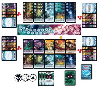 Not Alone FR est un jeu de cartes asymétrique opposant un joueur (la Créature) aux autres joueurs (les Traqués). Si vous incarnez l’un des Traqués, vous explorerez Artemia au moyen de cartes Lieu. Aidés de vos cartes Survie, vous tenterez de résister à la traque de la Créature jusqu’à l’arrivée des secours. Si vous incarnez La Créature, vous traquerez les naufragés de l’espace afin de les assimiler à l’écosystème de la planète. Aidée de vos cartes Traque et des manifestations d’Artemia, vos assauts répétés annihileront progressivement la volonté des Traqués, ce qui les liera inéluctablement à la planète.