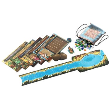 Votre objectif est de remplir votre verrerie en y plaçant au mieux des Éclats de verre collectés dans la rivière. À chaque tour de jeu, placez un des éclats de votre bourse vers une tuile rivière (en respectant les impératifs de forme), puis ramassez les éclats d’une tuile adjacente, ou bien remplissez votre bourse en prenant 4 des 5 éclats présents dans le lac. Prenez garde à ne pas trop en ramasser au risque d’être victime de crue, ce qui vous couterait des points en fin de partie.