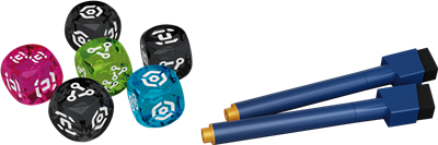 Grâce aux dés surdimensionnés et aux feutres effaçables, donnez vie à la galaxie sur vos fiches individuelles.